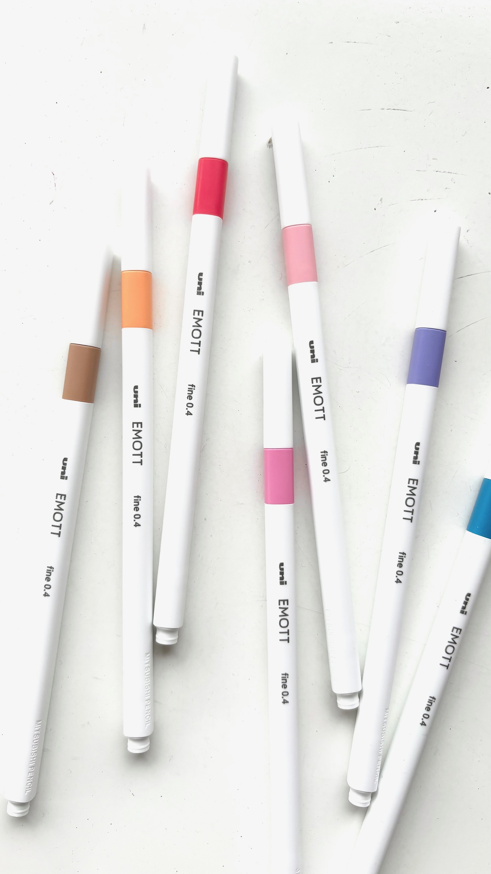 EMOTTには、極細、淡い中間色のラインナップ、豊富な色のバリエーションなど、今までのサインペンにない様々な要素が追加実現されています。