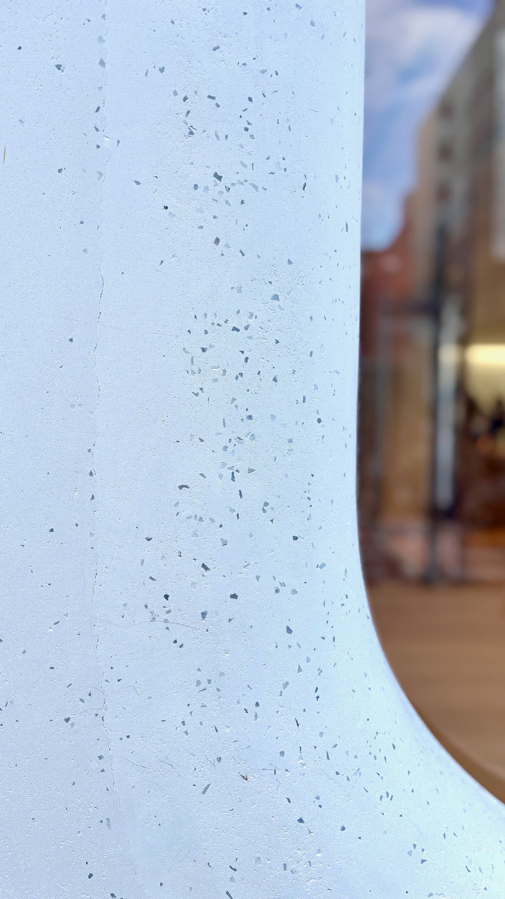 この断絶は店舗全体に見受けられ、眼鏡と現代美術、外皮と内部、新しさと歴史、木とコンクリート、繊細と粗野、柔らかさと硬質感、和とグローバル、それぞれが対立するようにぶつかり合っている構成がユニークで、魅かれるところです。