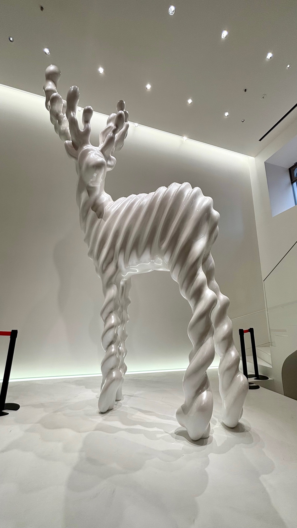 そして、1階と地下を繋ぐ吹き抜けの階段部分には、大阪万博で展示されていた名和晃平の現代美術が展示されている。
