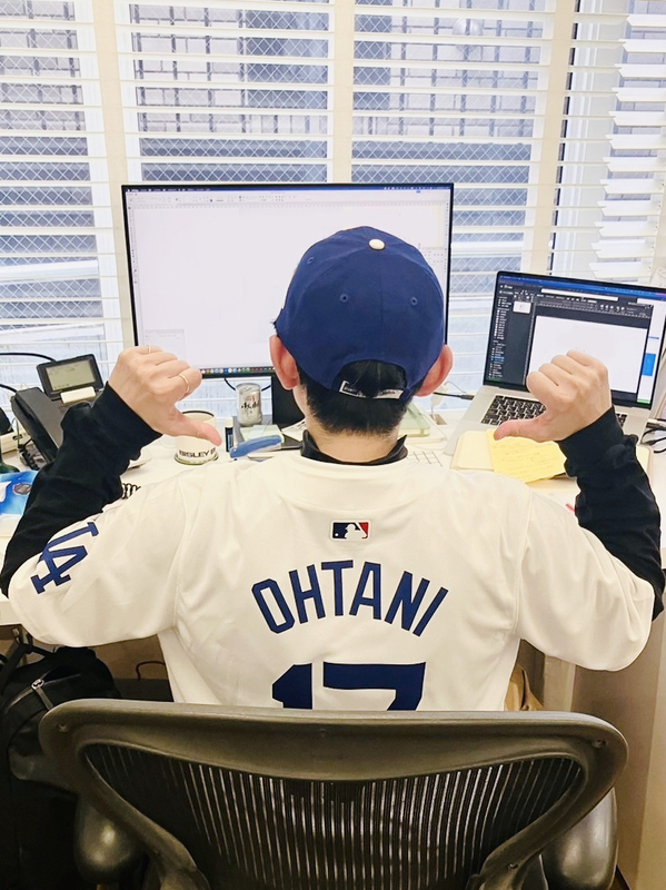 「今日は大谷くんを生で観られる...!」というテンションのまま、大谷選手のユニフォームを着て仕事してました笑