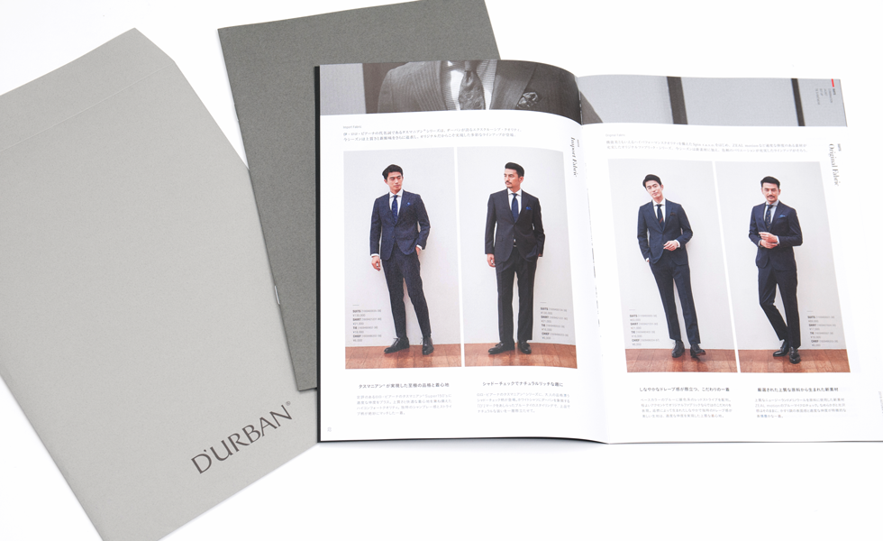 日本を代表する紳士服ブランド「D'URBAN」の2019AWツール制作。シーズンを象徴するスタイルブックをはじめ、コートブック、ポスター、POP、封筒など、各種ツールの制作を担当。制作範囲は企画構成から撮影ディレクション、デザイン、印刷まで。