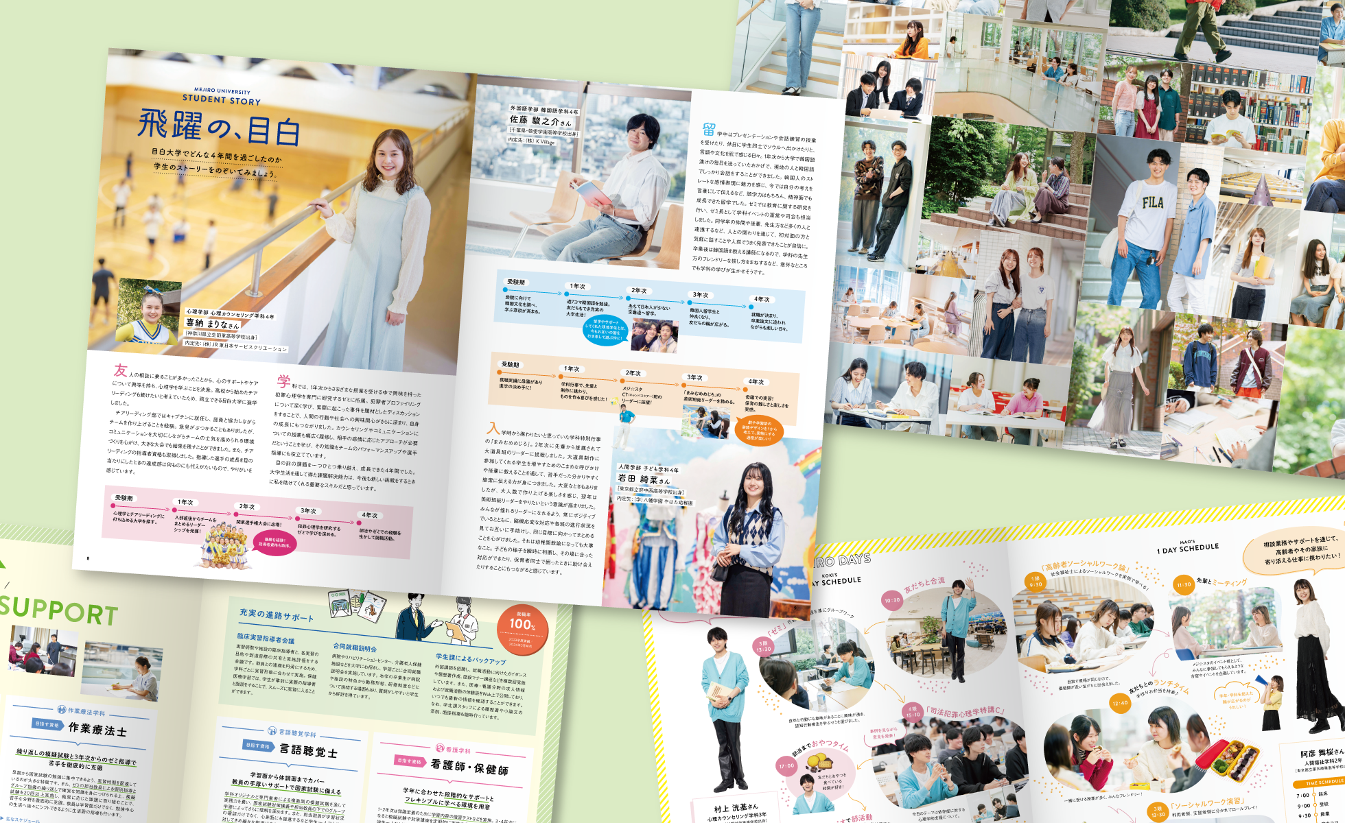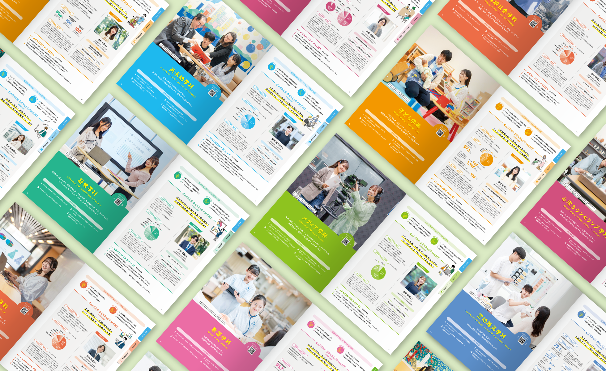 2025年度版に続き、目白大学の受験性向け大学案内の制作を担当。全体の構成やデザインのトーン&マナーの設計、撮影ディレクション、イラストのディレクションなど、コンテンツ設計からビジュアルマネジメントまでトータルでデザインディレクションを行った。前年度版の方針を引継ぎ、各学部・学科の学びや特徴をわかりやすく訴求するとともに、掲載コンテンツをアップデート。鮮やかなイラストを用いたトピック紹介や個性豊かな学生たちを紹介するスナップ企画など、学業以外にも受験生が読んで楽しめる企画を多数取り入れ、大学への興味・関心に繋がる一冊を目指した。