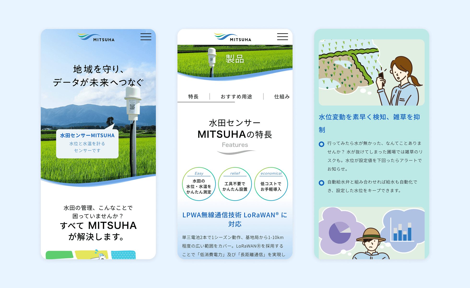 農業ICT・水田水管理プラットフォーム「MITSUHA」のサービスサイト制作